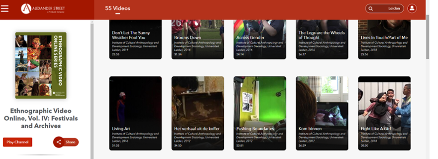 The Leiden University Visual Ethnography collection has been added to Alexander Street Press, an educational streaming video service. The master’s specialization Visual Ethnography has supported many talented individuals to produce inspiring films. About 70 master’s thesis films of the past 8 years were nominated and added to the collection. This unique collaboration allows alumni to reach a broader audience and public exposure so their research and innovative storytelling will get greater visibility.