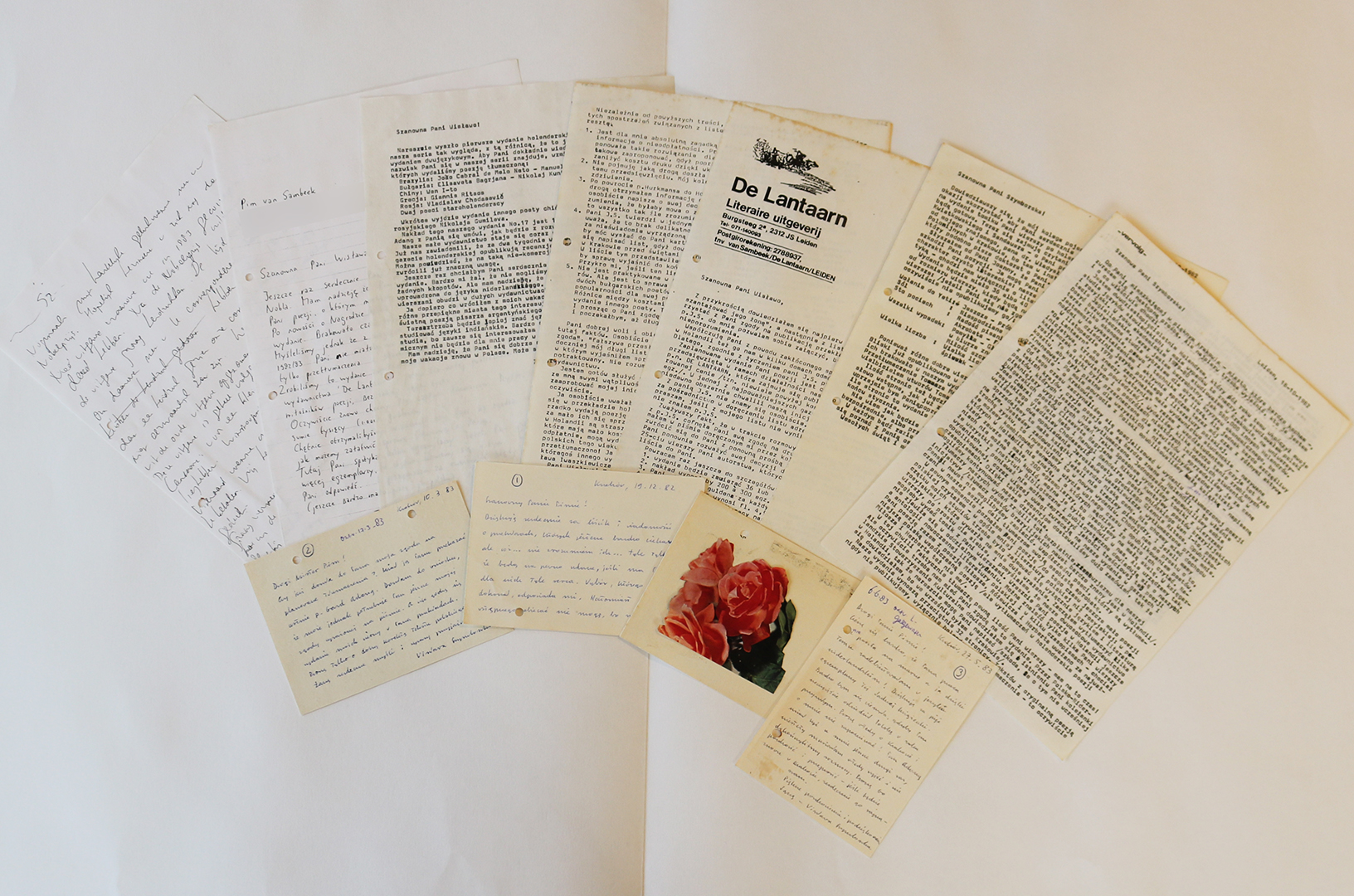 The correspondence consists of four letters from Szymborska to Van Sambeek and six letters from Van Sambeek to Szymborska. The donation also contains two postcards from the Polish poet Ewa Lipska (1945) to Van Sambeek and some accompanying documents. The correspondence offers insight into the realization of De Lantaarn's translation and the working methods of Szymborska and her contacts. The donation also contains a commentary by Van Sambeek on the donated documents, providing extensive context.
