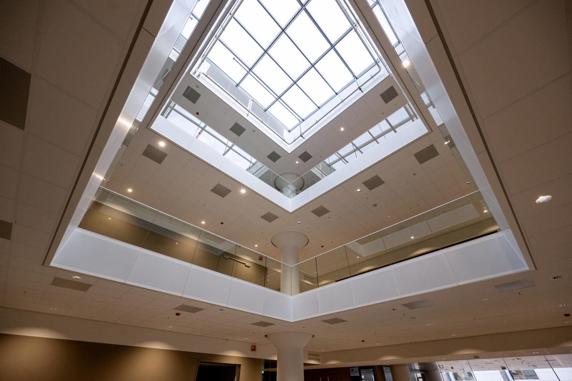The ground floor is the inviting heart of the campus. The original entrance has been restored to its former glory, and the atrium will house the University Sports Centre and information desk. The basement will house a large parking facility for 1,350 bikes.