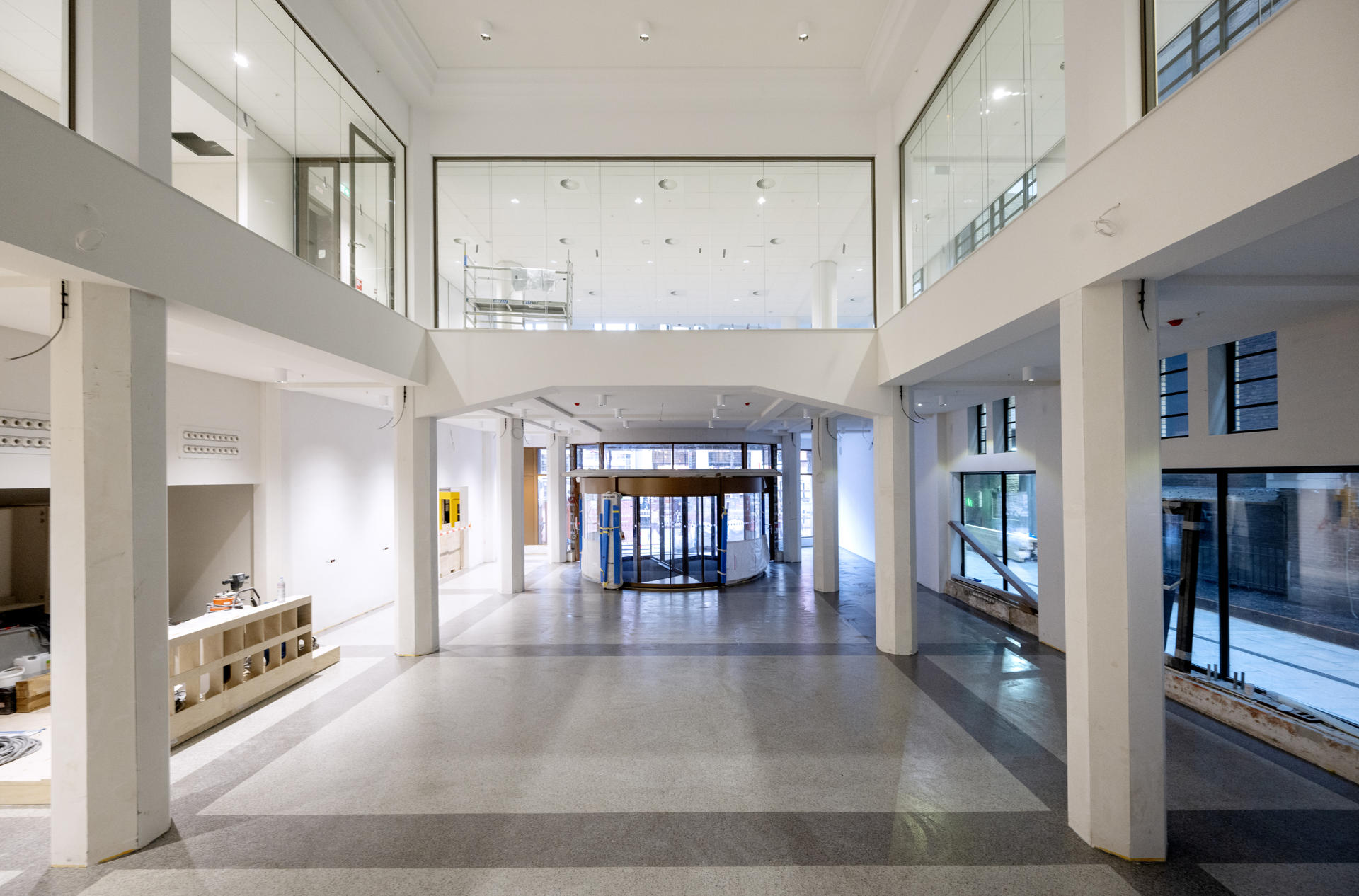 The former department store has left its mark throughout the building. Original pillars, ceilings and staircases with tiles from the 1930s have been retained, creating a mix of historical charm and exciting modern environment. Over the coming months, the various partners will furnish their spaces and the interior will begin to develop a character of its own.