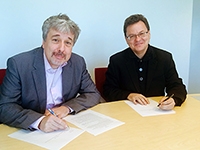 University Librarian De Belder and IIAS Director Peycam sign the agreement for the ICAS Book Prize.