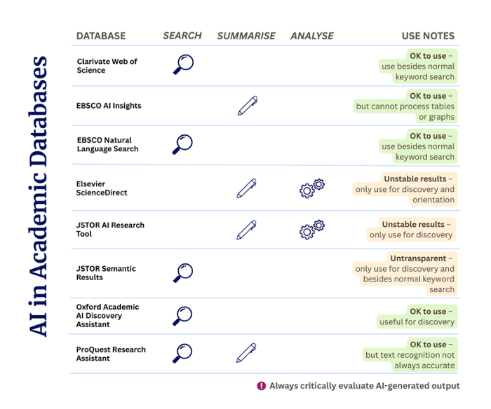 AI in major academic databases, such as EBSCO, Elsevier, and JSTOR explained: what can these tools be used for – and where do they fall short?